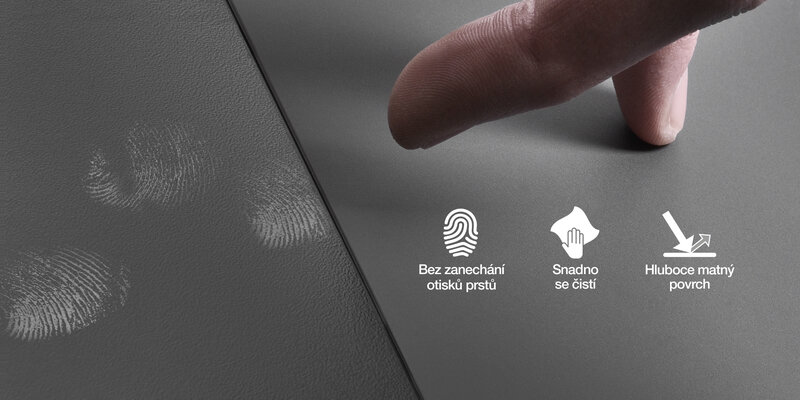 povrchová struktura OPTIMATT-OM/ hluboký mat s anti-fingerprint povrchem (bez zanechání otisků prstů).