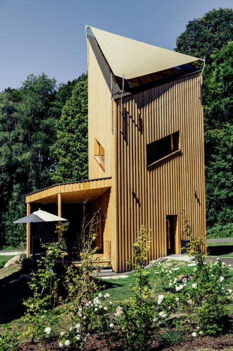 Rekreační středisko Ikuna v Natternbachu v Horním Rakousku slibuje svým hostům nezapomenutelný zážitek z přírody na působivé ploše 200 000 m². Díky přírodnímu dobrodružnému parku, pohodlným 4hvězdičkovým apartmá teepee a četným dobrodružstvím přímo na místě nabízí návštěvníkům výjimečný pobyt. Komplex doplňuje ještě jeden vrchol: 15 metrů vysoké chaty s hvězdnou oblohou, které slibují jedinečný výhled na noční oblohu z horního patra. Realizovala je hornorakouská dřevostavební firma LibertyDotHome, která úzce spolupracovala s JAF St. Florian.