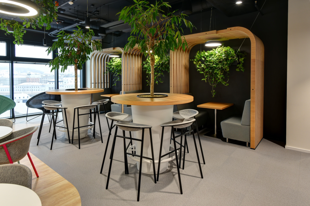 Dnešní kancelářské prostory se vyznačují promyšlenou multifunkčností a nabízejí lidem na pracovišti rozmanité využití v souladu různými potřebami, které mohou mít v průběhu pracovního dne. V Brně v České republice je velmi pěkný příklad promyšlené koncepce prostoru. Společnost JAF Vyškov dodala pro toto moderní pracoviště dubovou dýhu, MDF desky a surové dřevotřískové desky. Použitý materiál dodává módnímu nábytku příjemné přírodní akcenty. Ty jsou navíc umocněny cíleným použitím pokojových rostlin, což místnostem propůjčuje inspirativní atmosféru.