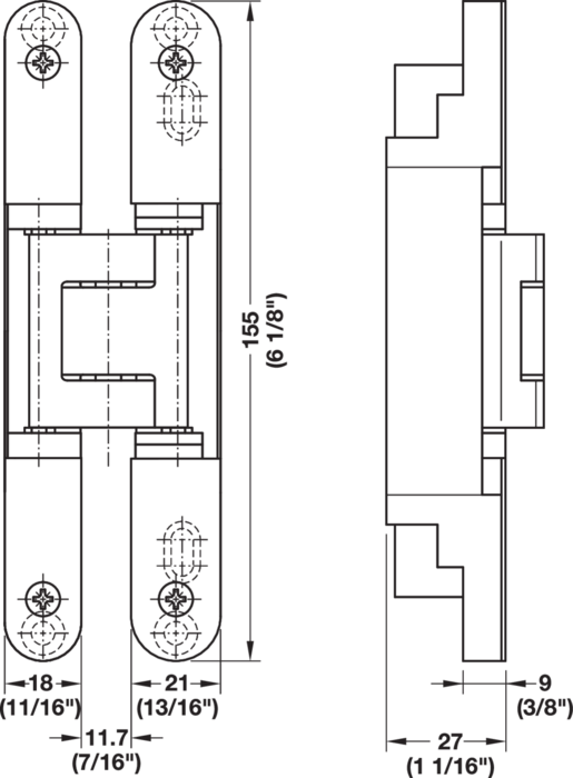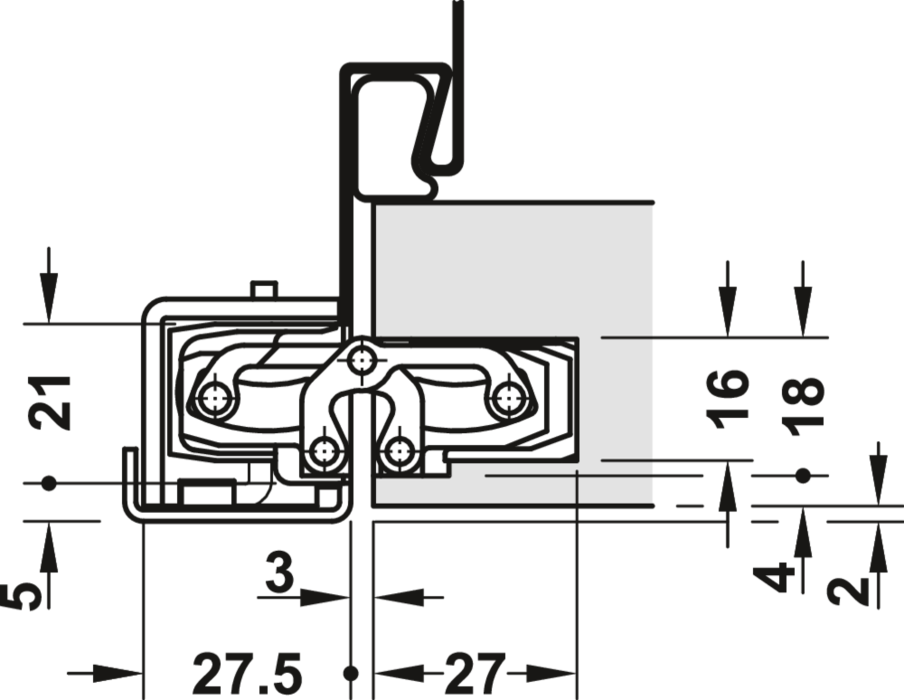- max. hmotnost dvěří pro 2 závěsy: 60 kg