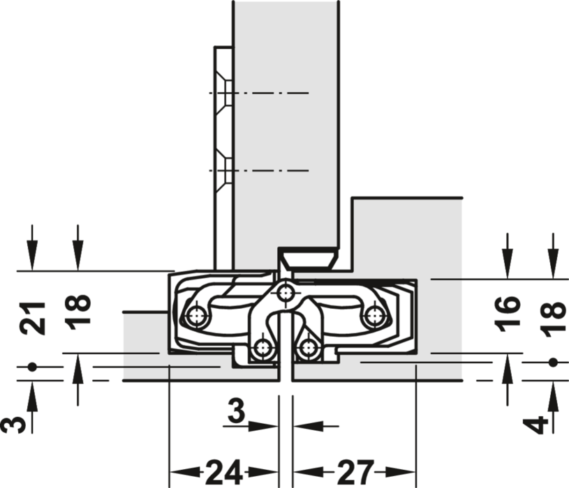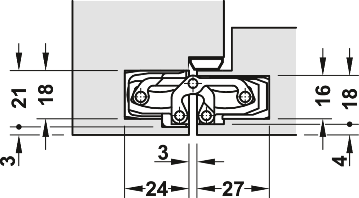 Häfele 924.18.921 / Skrytý dveřní závěs TECTUS TE 240 3D N, pro bezfalcové dveře do 60 kg, stříbrná