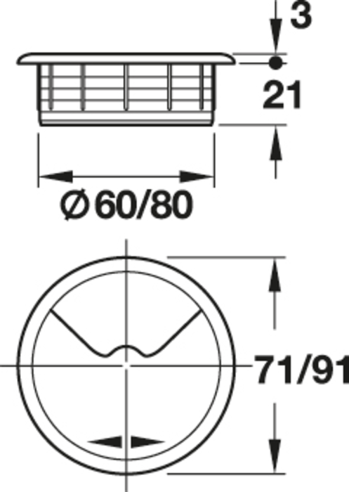 Häfele 428.96.702 / Kabelová průchodka, s otočnou částí v krytu, pro otvor Ø 60 mm, bílá