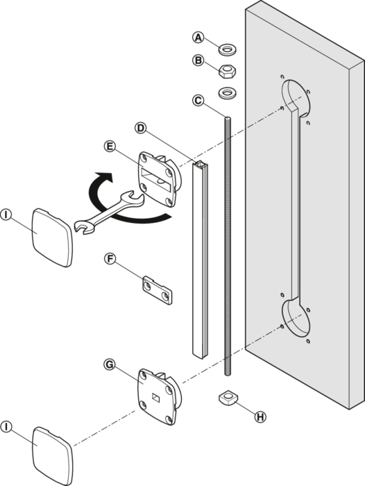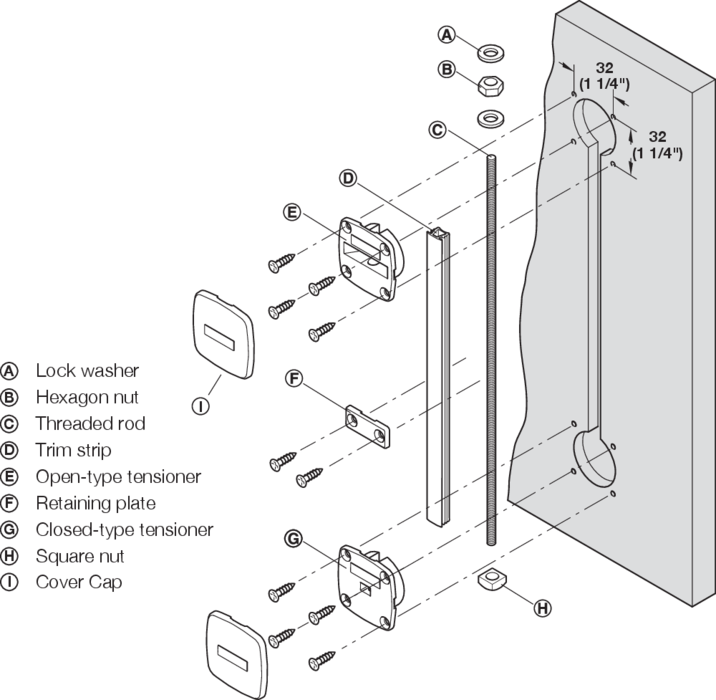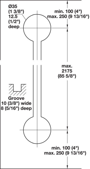 Pro každé dveřní křídlo jsou doporučena 2 vyrovnávací kování. Není vhodné pro tvrdé dřevo!
