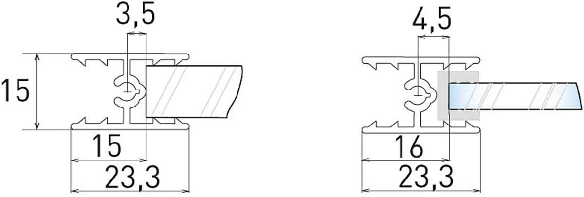 Salu 17D1HS553M / Profil S55 horní a středový, stříbrná elox
