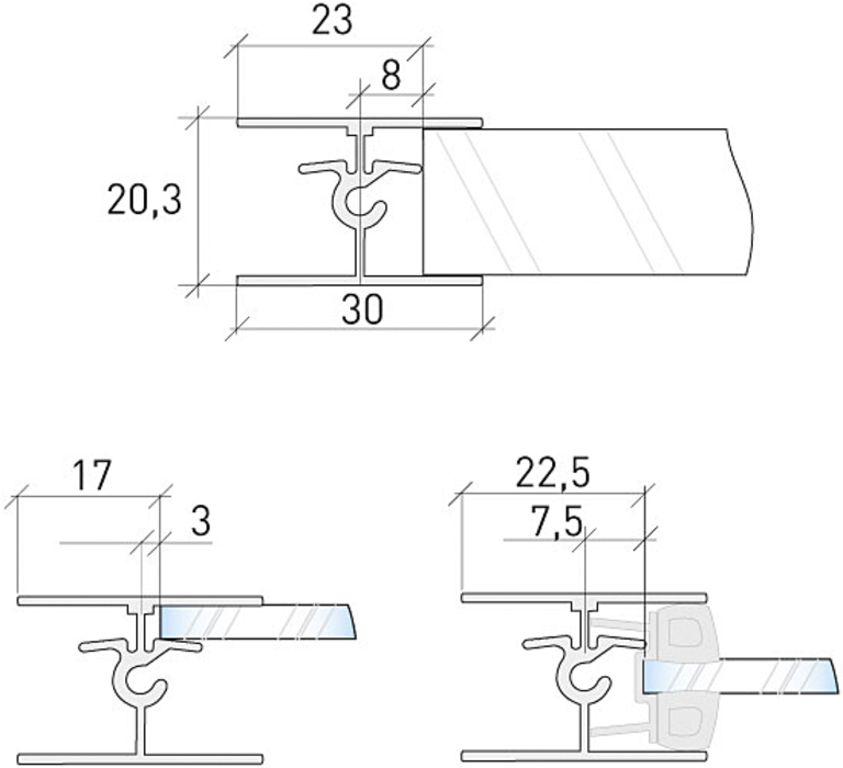 Salu 17D1HS653M / Profil S65 horní a středový, stříbrná elox