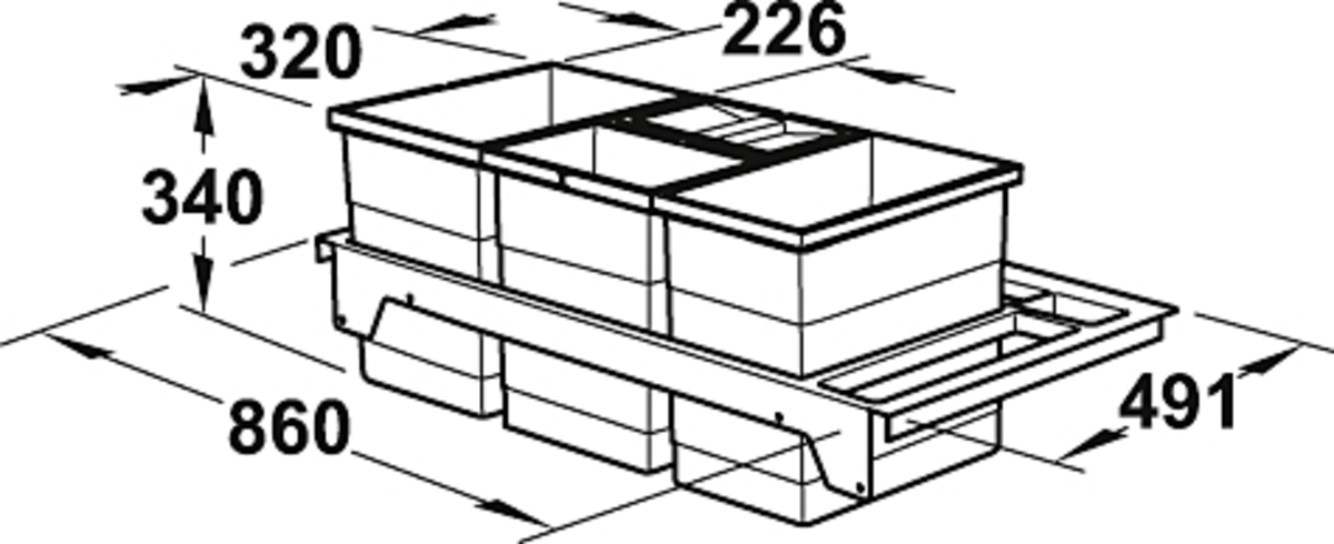 Häfele 502.03.556 / 4-místný odpadkový koš Seperato-K 3620-91 pro montáž s výsuvnými systémy, pro šířku korpusu 900 mm, 2x18 a 2x8 L, 2x úložný prostor, světle šedá