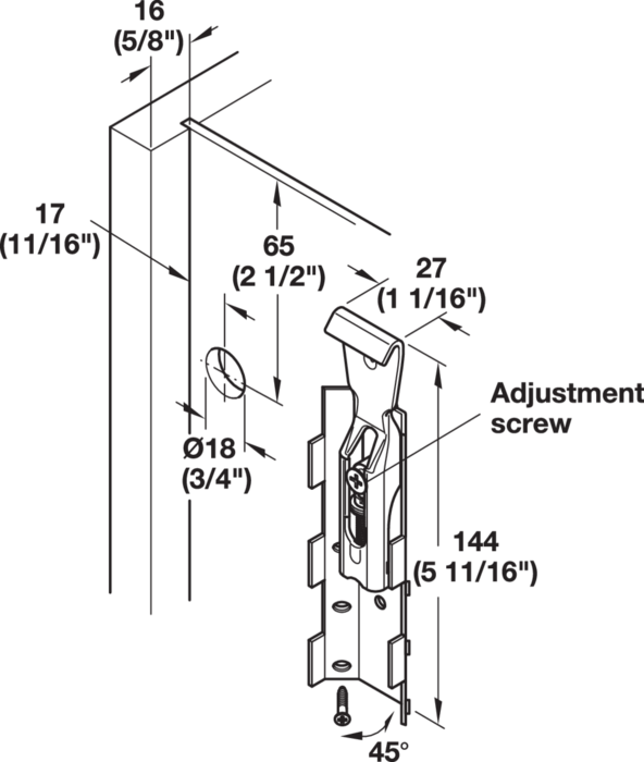 > závěs je neviditelný, namontovaný za zadní stěnou (potřebný prostor min. 16 mm)