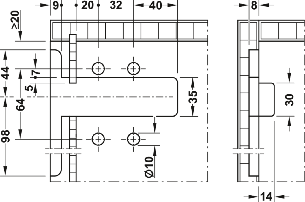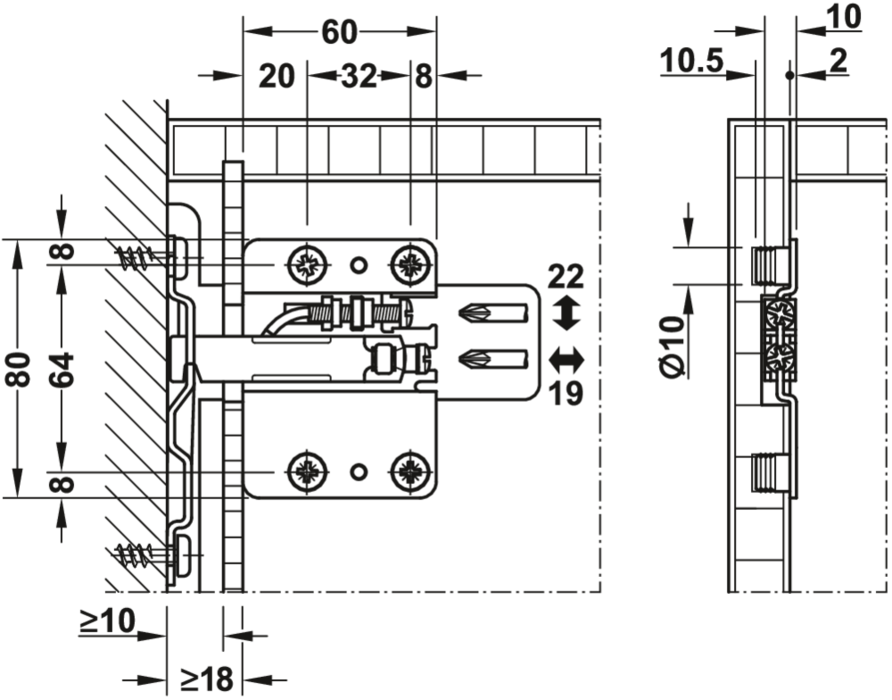Häfele 290.40.903 / Camar závěsné kování P pro spodní skříňky, 120 kg, pozink