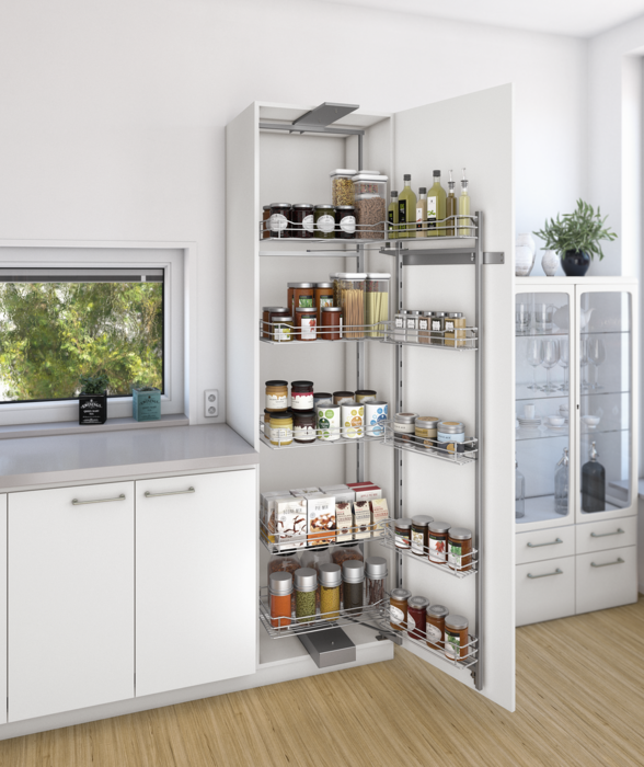 Häfele 546.81.253 / Vnitřní výsuv pro potravinovou skříň, s policí na dveře a závěsnými koši, drátěný, pro šířku korpusu 600 mm