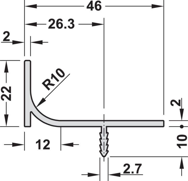 Häfele 126.37.722 / Zapuštěný úchytkový profil, svislý, RAL 9010 bílá