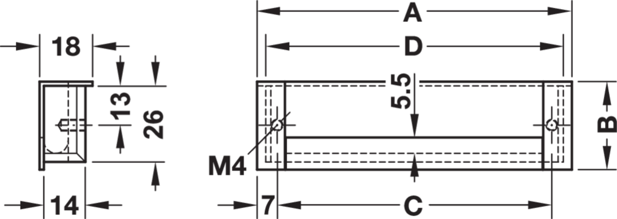 Häfele 151.99.901 / Nábytková mušle do hrany, rozteč 96 cm, stříbrná