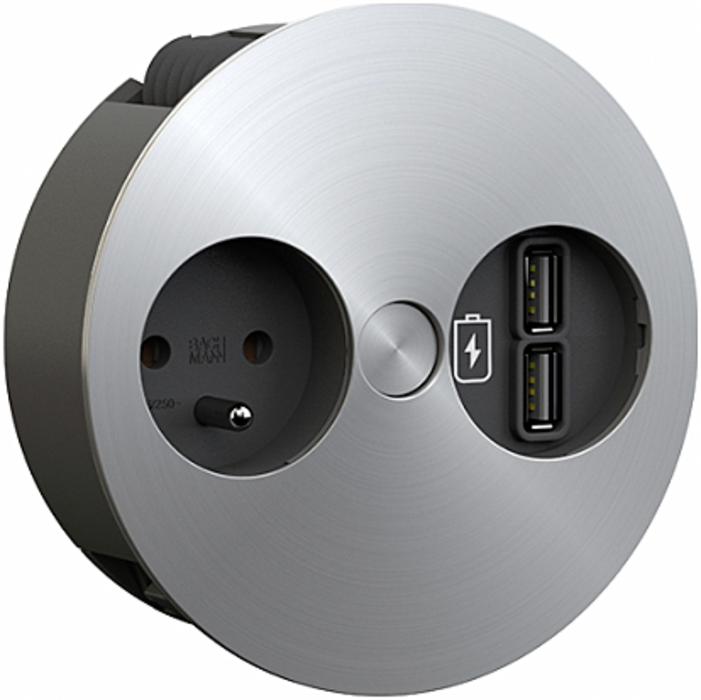 Häfele 820.08.02X / TWIST otočný zásuvkový díl, 1 zásuvka (UTE) a 2 USB dobíjecí jednotky 5 V/3, 15 A, nerez