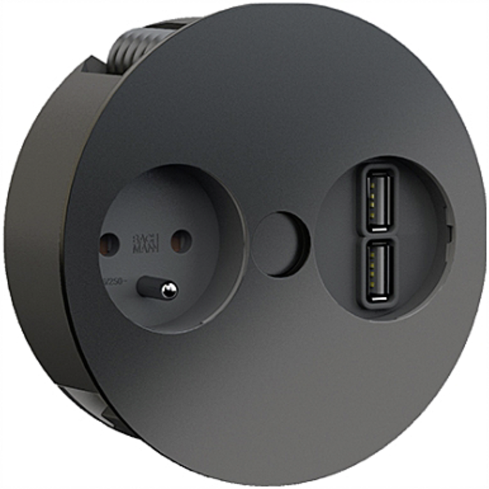 Häfele 820.08.32X / TWIST otočný zásuvkový díl, 1 zásuvka (UTE) a 2 USB dobíjecí jednotky 5 V/3, 15 A, černá
