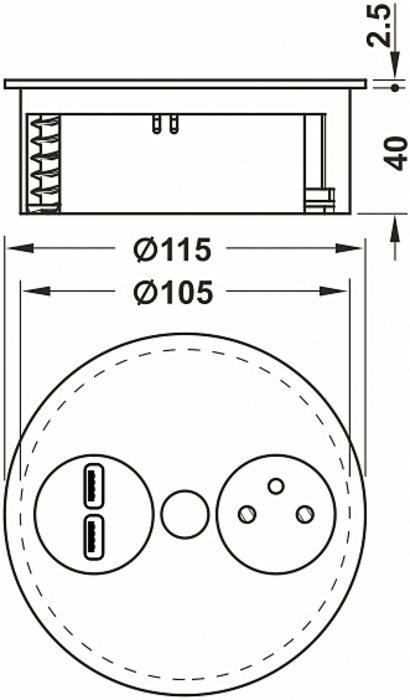 > Provedení: 1 x zásuvka (UTE), 2 x USB (A/A 15 W)