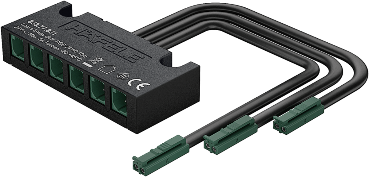 - pro připojení RGB svítidel k Häfele Connect Mesh 6-cestnému rozbočovači
