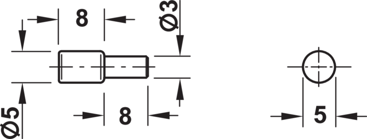 Häfele 282.06.706 / Ocelová podpěrka pro dřevěnou polici, k naražení do vyvrtaného otvoru Ø 3 mm, nosnost 60 kg, poniklováno