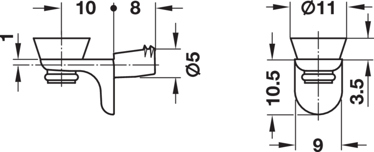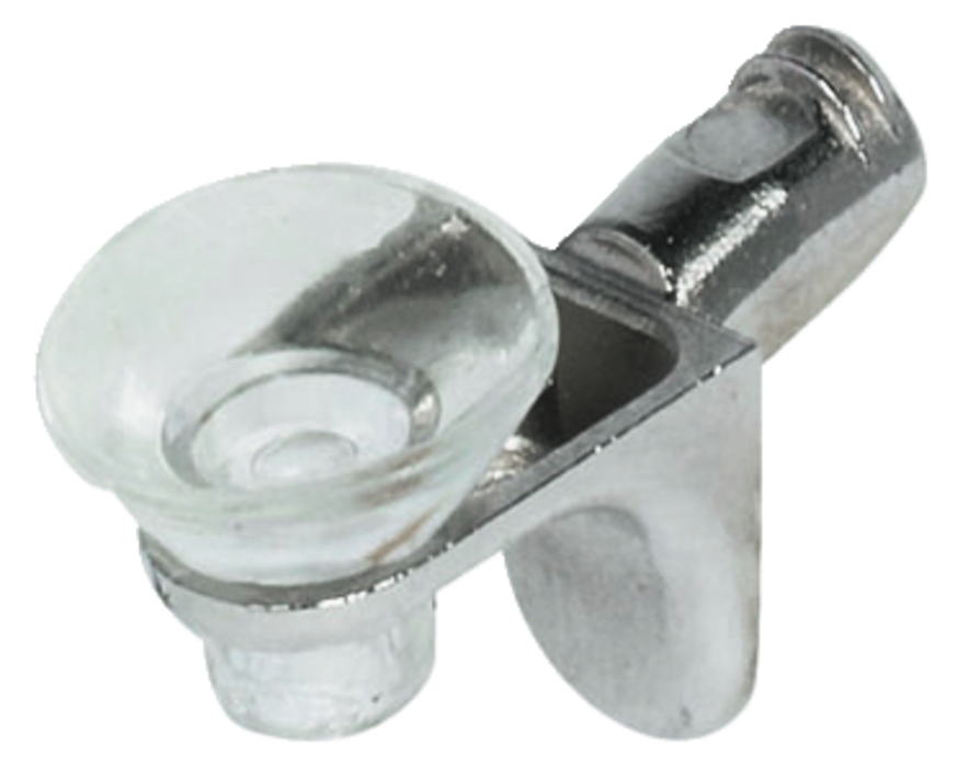 Häfele 282.24.732 / Široká podpěrka pro skleněnou polici s plastovou podložkou, se dvěma drážkami, k naražení do vyvrtaného otvoru Ø 5 mm - nikl