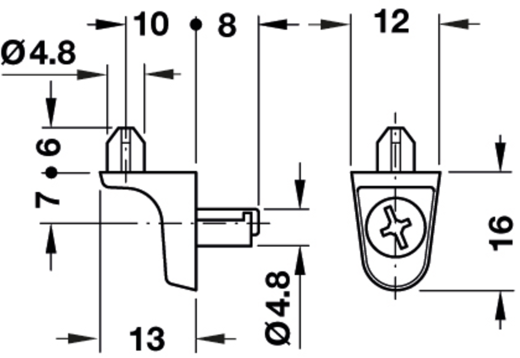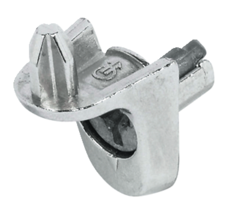 Häfele 282.26.715 / Podpěrka pro dřevěnou polici s rychlomontážním prvkem, odlitek ze zinku, pro naražení do vyvrtaného otvoru Ø 5 mm, nosnost 75 kg - niklováno