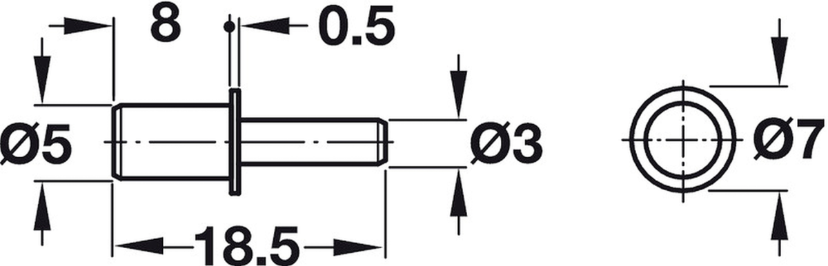 Häfele 282.43.727 / Ocelová podpěrka pro dřevěnou polici, k naražení do vrtaného otvoru Ø 3 mm, nosnost 60 kg, poniklováno
