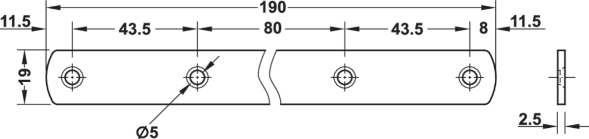 Häfele 260.22.950 / Spojovací deska se čtyřmi montážními otvory, délka 190 mm, šířka 19 mm