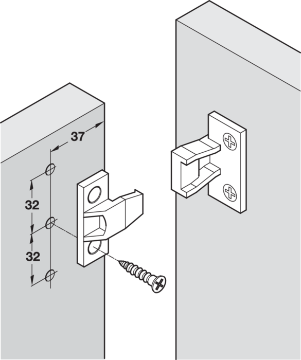 Häfele 262.50.368 / Nasouvací kování Keku, bočnice rámu AS k přišroubování na spodní konstrukci, s upevňovacími vruty se zápustnou hlavou průměr 4 mm
