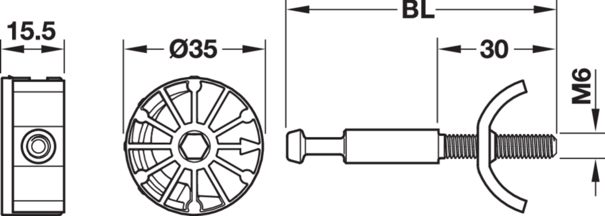 Häfele 262.87.041 / Spojovací kování pracovních desek Maxifix 35 - délka šroubu 68,5 mm