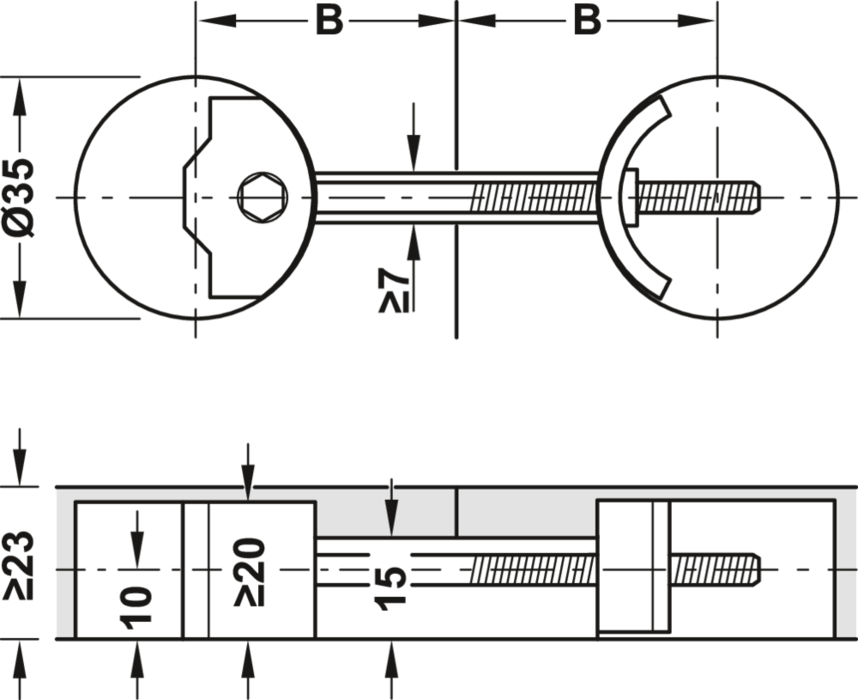 Häfele 262.96.844 / Spojovací kování pracovních desek, pro misku Ø 35 mm, táhlo 81 mm, pozink
