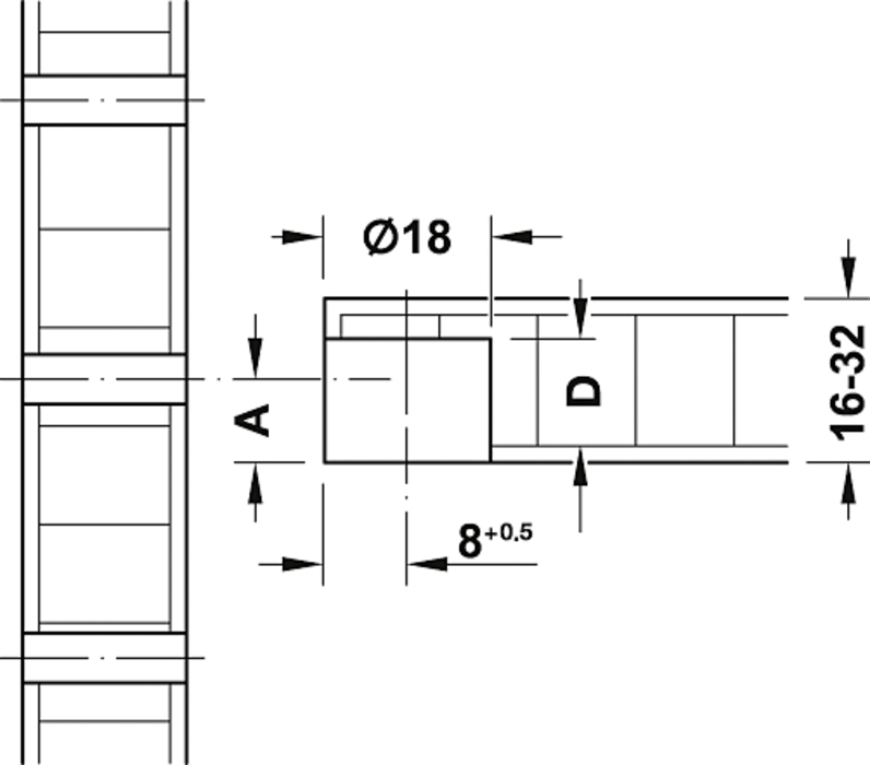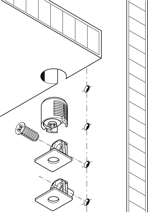 Montáž: Nosný díl k naražení do vyvrtaného otvoru o průměru 5 mm