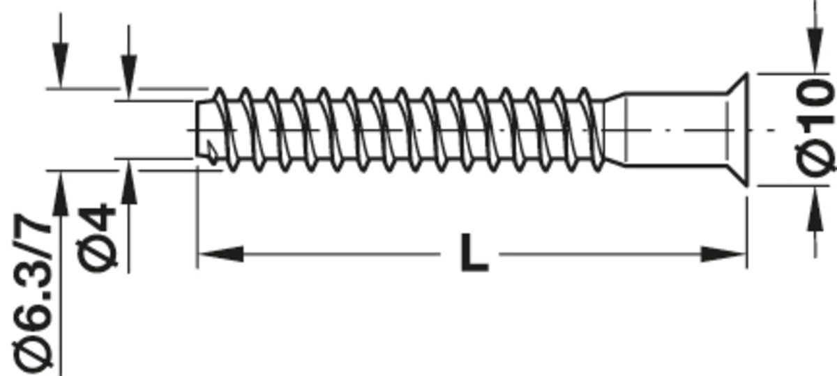 Häfele 264.43.600 / Konfirmát SW4 pro otvor Ø 5 mm, zápustná hlava, šestihran 7x50 mm, pozink