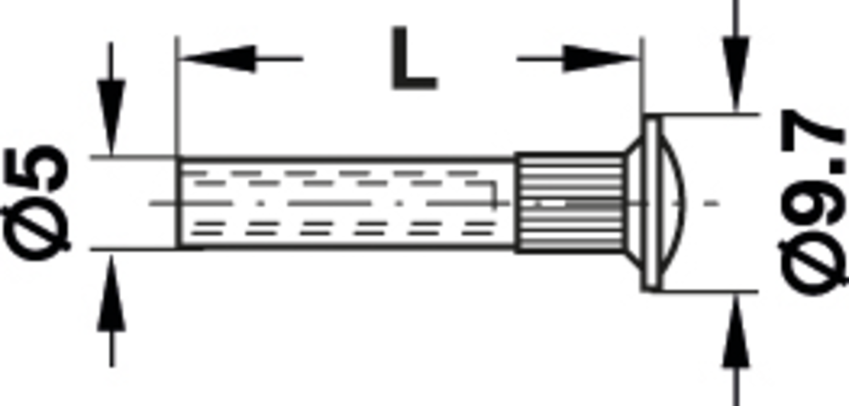 Häfele 267.01.715 / Závitové pouzdro s vnitřním závitem M4, pro otvory Ø 5 mm, délka 27 mm - niklováno