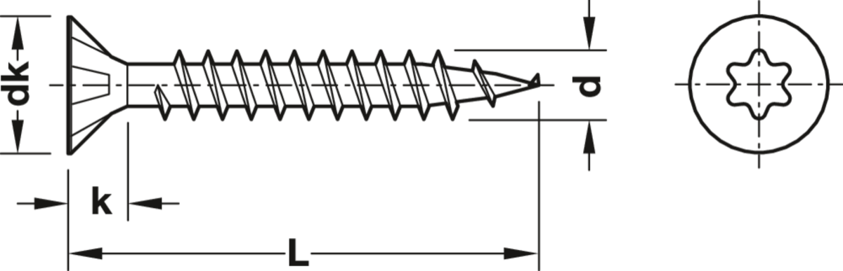 Häfele 018.50.121 / Vrut do dřevotřísky Spax IS20 se závitem k hlavě Torx, 4,0x30 mm, pozink