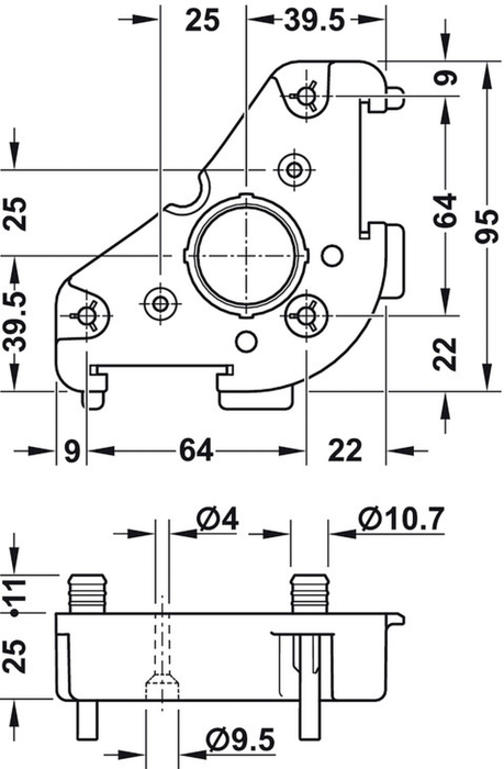 Häfele 637.38.340 / Plastová montážní podložka AXILO™ 78, trojhranná, k naražení, černá