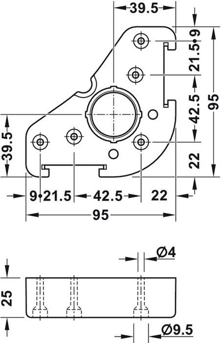 Häfele 637.38.341 / Plastová montážní podložka AXILO™ 78, trojhranná, k přišroubování, černá