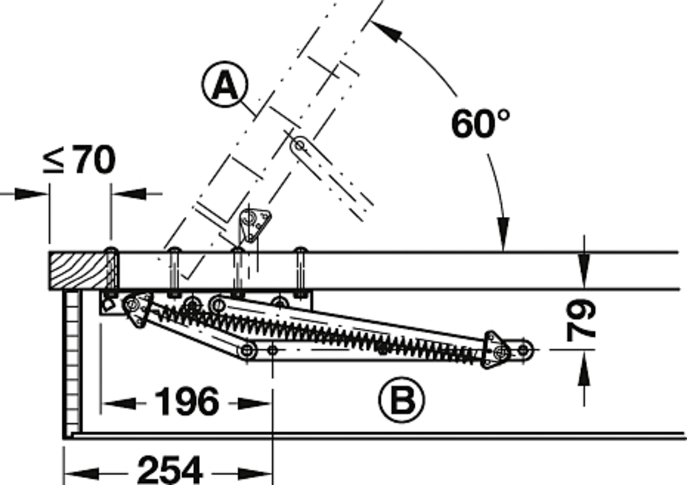 Häfele 274.50.915 / Pružinové postelové kování Swing pro lehátka a postele s příčně odklápěcím lůžkem, pozink