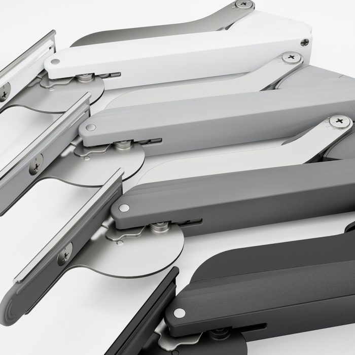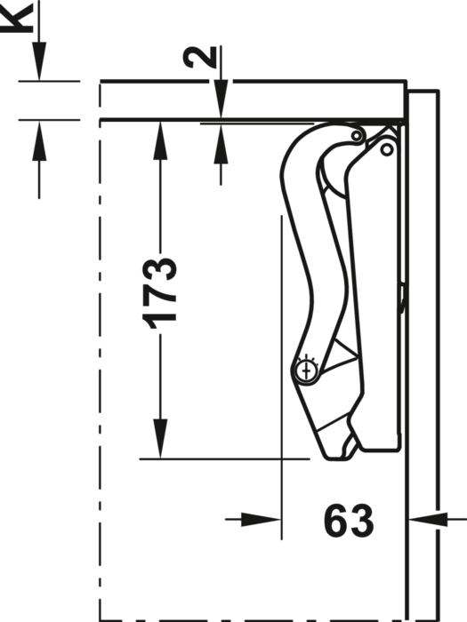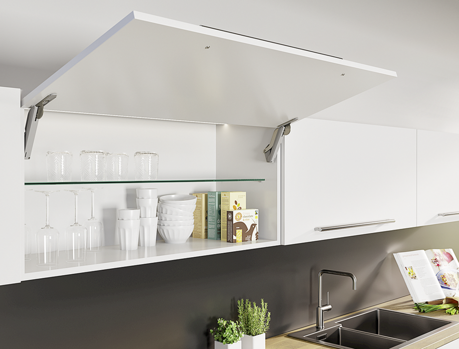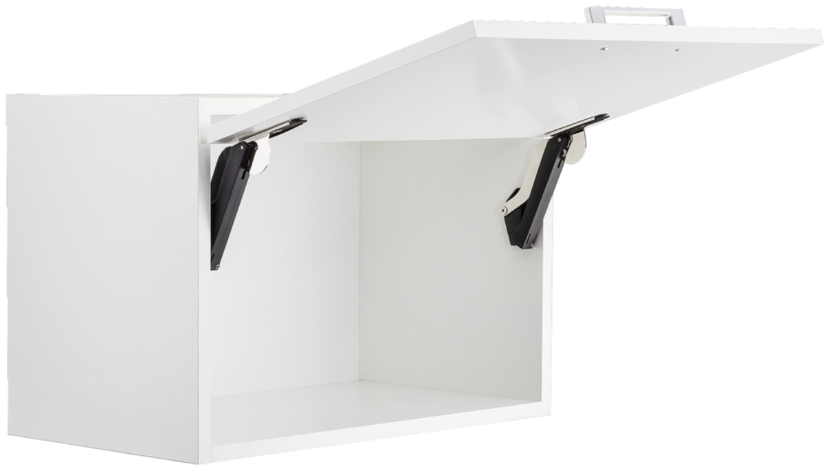 Výběr výklopného kování pro čelní panely s úchytkou závisí na výšce korpusu a hmotnosti klopny včetně úchytky. Pro výběr modelu použijte tabulku s ukázkovými hodnotami. Pro čelní panely s hliníkovým rámečkem od šířky 45 mm objednejte vhodnou sadu šroubů 372.27.600. V případě pochybností doporučujeme použít silnější model kování.