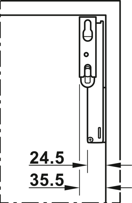 Kování k přišroubování předmontovanými Eurošrouby, připevnění předního panelu bez nářadí, k nasunutí na předmontované upevňovací šrouby.
