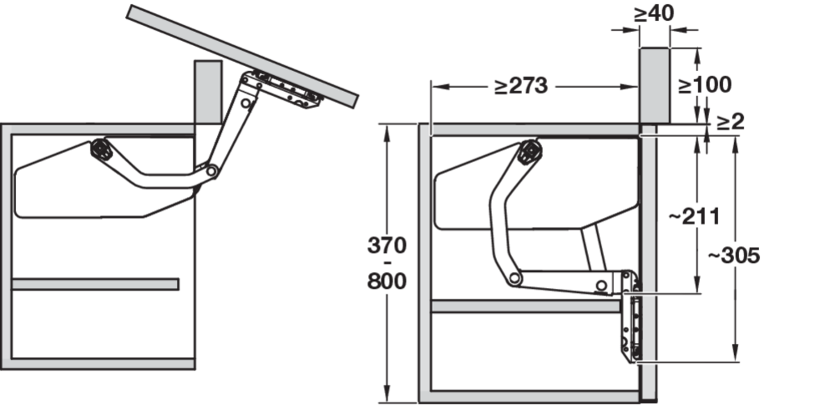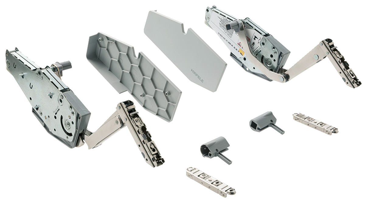 Pro výklopy šířky ≥1800 mm použijte dvě sady Häfele Free Swing.