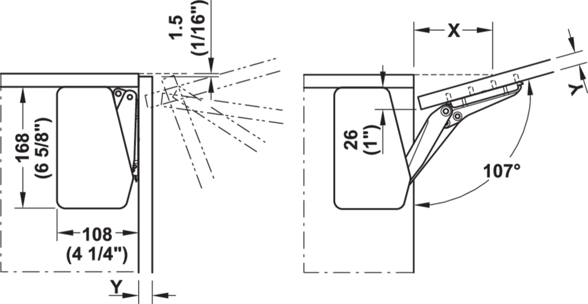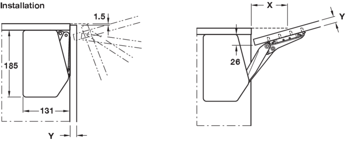 > použití: pro výklopná dvířka s nebo bez úchytky (push-to-open)