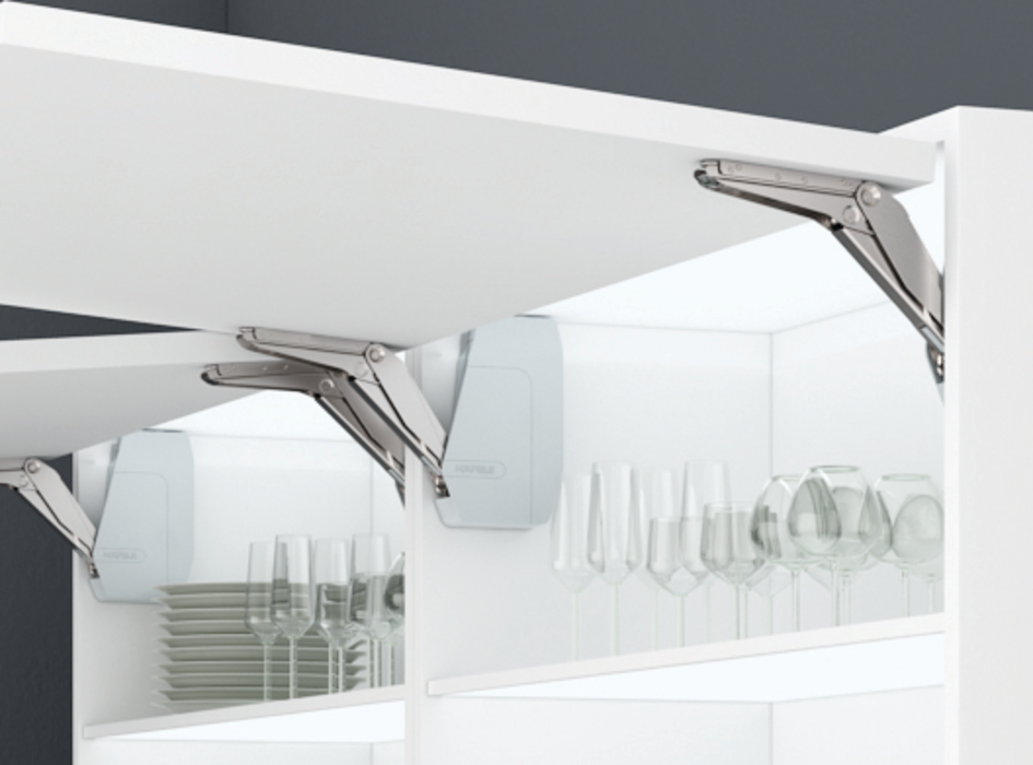 Häfele 372.91.331 / Výklopné kování Free Flap 3.15 model E, barva krytek - šedá