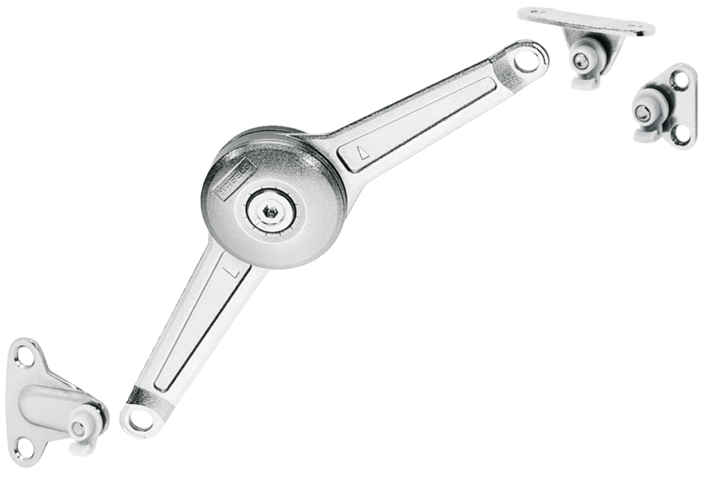 Häfele 373.66.612 / Kompletní sada Duo Standard pro dřevěné klopny s hliníkovým rámečkem od šířky 45 mm, odstup hrany 37 mm - niklováno