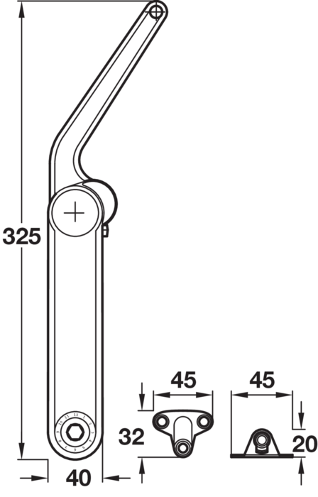 Häfele 373.69.402 / Výklopné kování Maxi - pro dřevěné klopny s hliníkovým rámečkem šířky 20 mm, model B, odstup hrany 37 mm - niklováno
