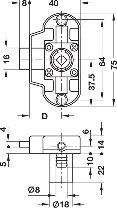 Häfele 224.64.310 / Symo trojcestný zámek pravý 25 mm, černá