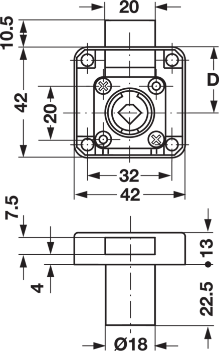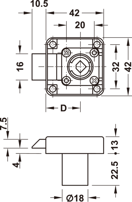 Häfele 232.37.323 / Symo zámek se střelkou pravý 25 mm, černá