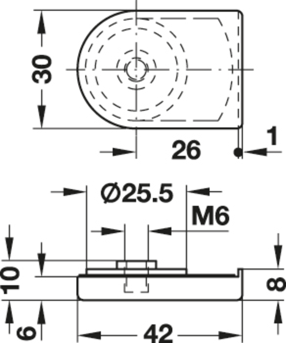 > upevňovací materiál M6 x 10 mm (pro tloušťku skla do 8 mm)