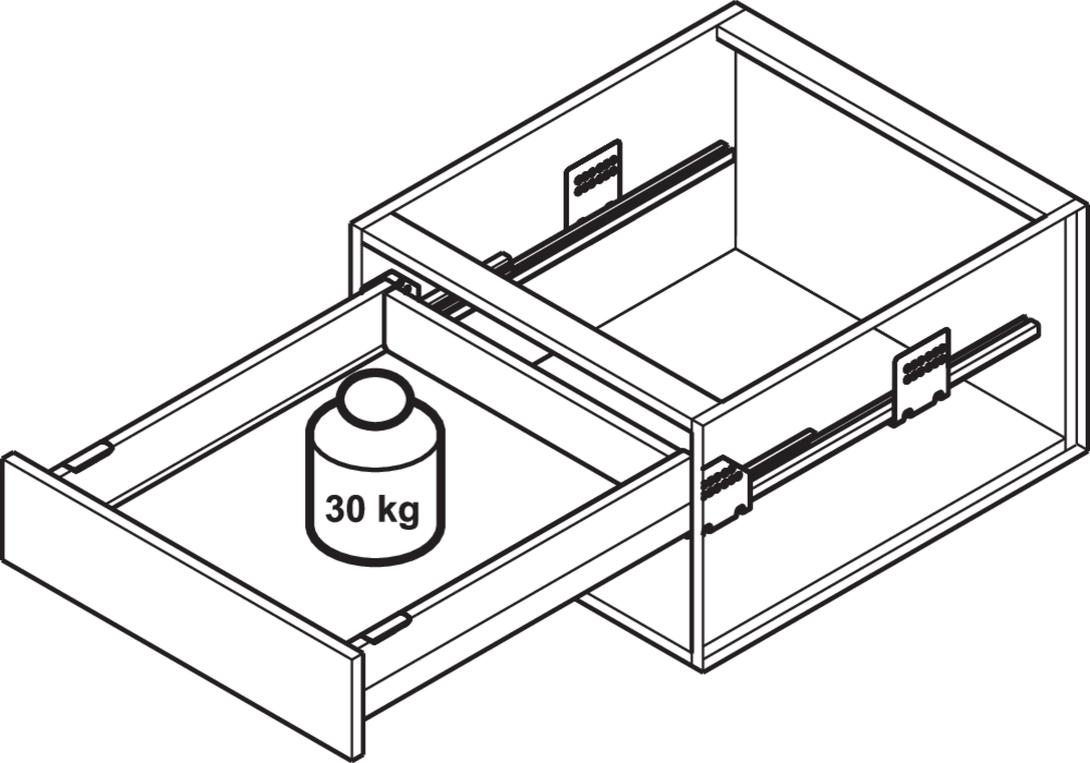 > způsob vysunutí: plnovýsuv, s integrovaným mechanismem tlumeného dotahu, s integrovaným kováním zadního panelu