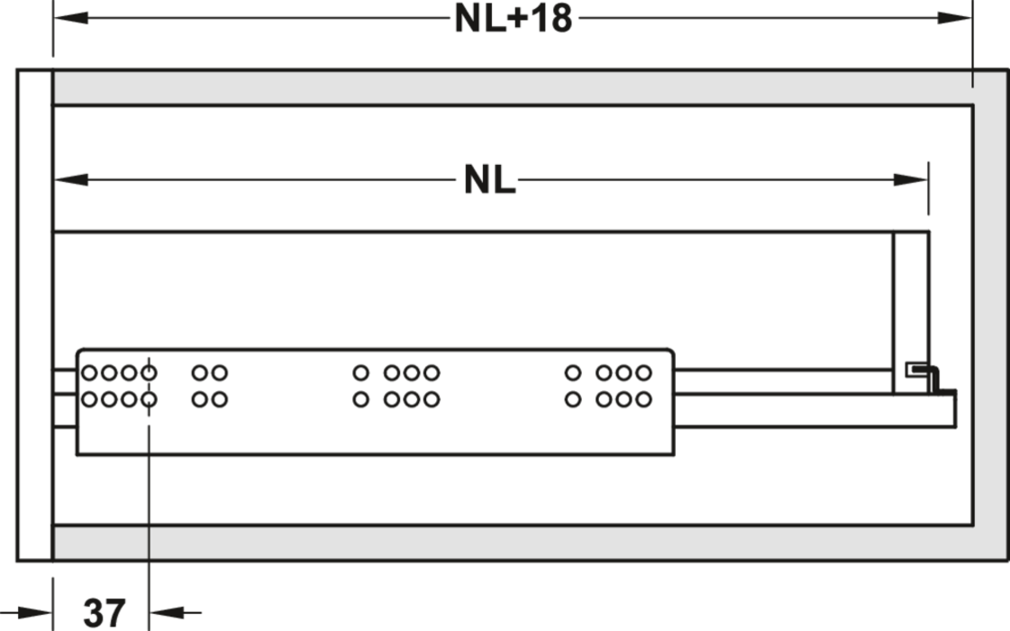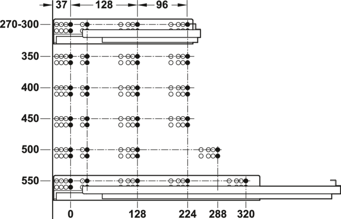 Häfele 433.03.670 / Matrix Runner UM A, Push-to-Open, plný výsuv, 270 mm, 30 kg