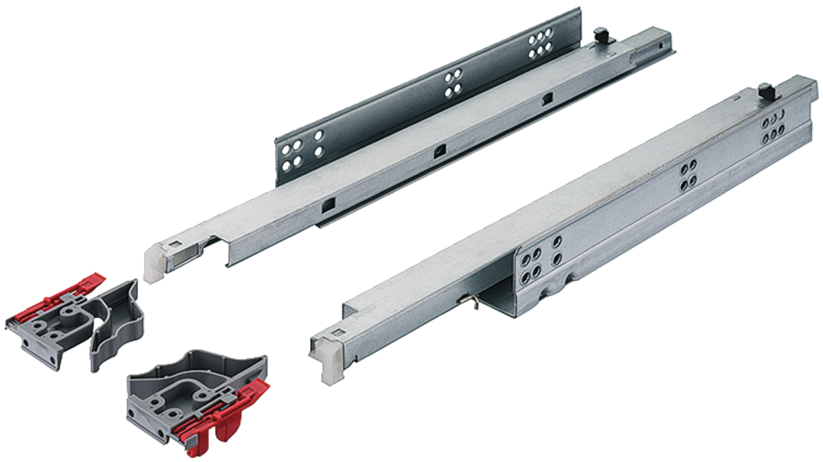 Häfele 433.10.138 / Zásuvkové systémy / Skryté výsuvy s tlumením, pro montáž na plochu, nosnost 30 kg, délka 350 mm