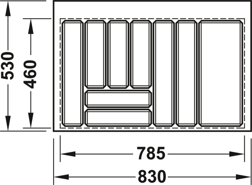 Häfele 556.60.718 / Vložka do zásuvky - univerzální, výška 52 mm, pro šířku korpusu 900 mm, bílá