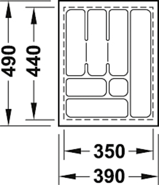Häfele 556.62.624 / Zásobník na příbory / zaříznutí na míru, pro šířku korpusu 450 mm a hloubku 500 mm, bílá