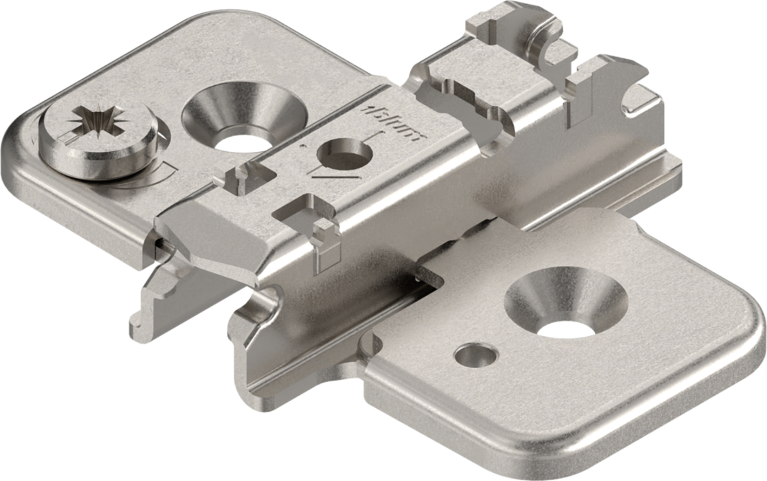 Blum 173H7130 / Montážní podložka CLIP křížová 37/32 mm, ocel, vruty, s excentrem, Z=3 mm, H=11,5 mm, poniklovaná
